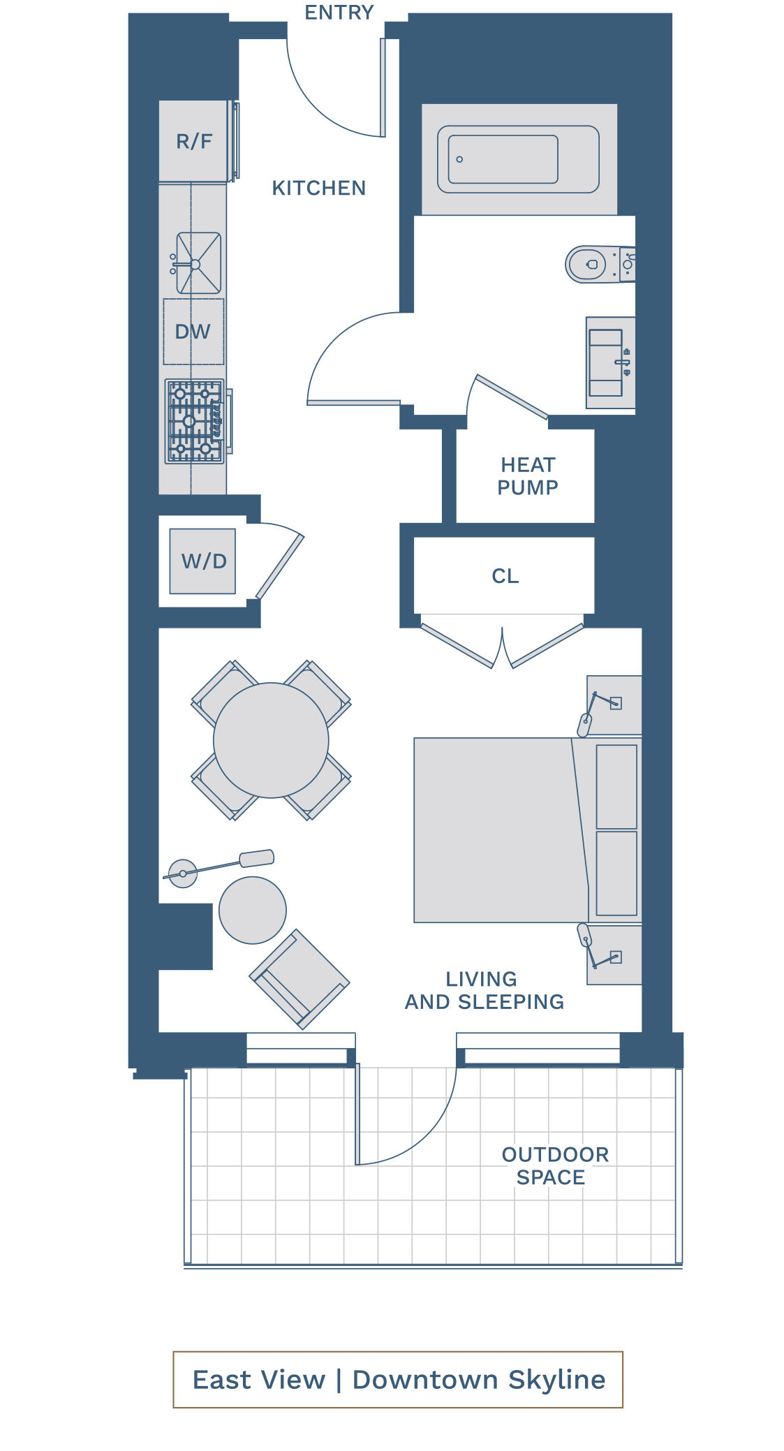 Thoughtfully designed, this studio maximizes space and comfort with a generous galley kitchen, spa-inspired bath, and in-home laundry. A private balcony extends the living space—ideal for morning coffee or evening wine overlooking Downtown Los Angeles.